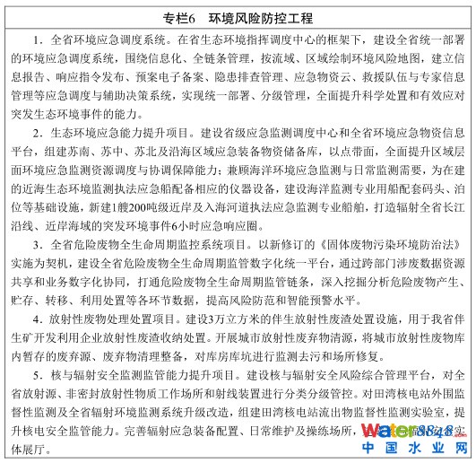 加強(qiáng)環(huán)境風(fēng)險(xiǎn)源頭防控。多層級(jí)開(kāi)展突發(fā)生態(tài)環(huán)境事件風(fēng)險(xiǎn)評(píng)估,2025年底前,完成省級(jí)突發(fā)生態(tài)環(huán)境事件風(fēng)險(xiǎn)評(píng)估,繪制全省重點(diǎn)環(huán)境風(fēng)險(xiǎn)“一張圖”。強(qiáng)化區(qū)域開(kāi)發(fā)和項(xiàng)目建設(shè)的環(huán)境風(fēng)險(xiǎn)評(píng)價(jià),對(duì)涉及有毒有害化學(xué)品、重金屬和新污染物的項(xiàng)目,實(shí)行最嚴(yán)格的環(huán)境準(zhǔn)入。常態(tài)化推進(jìn)環(huán)境風(fēng)險(xiǎn)企業(yè)突發(fā)事件生態(tài)環(huán)境風(fēng)險(xiǎn)隱患排查,實(shí)施分級(jí)分類動(dòng)態(tài)管理。有效提升涉危涉重工業(yè)園區(qū)環(huán)境應(yīng)急管理水平,完成園區(qū)突發(fā)生態(tài)環(huán)境事件三級(jí)防控體系建設(shè)。以長(zhǎng)江、太湖、大運(yùn)河、集中式飲用水水源地以及化工園區(qū)周邊重點(diǎn)水域等敏感目標(biāo)為重點(diǎn),開(kāi)展水環(huán)境安全工程建設(shè)。到2025年,全面建成“1+13+N”重點(diǎn)敏感保護(hù)目標(biāo)突發(fā)水污染事件應(yīng)急防范體系,確保重點(diǎn)流域水環(huán)境安全。