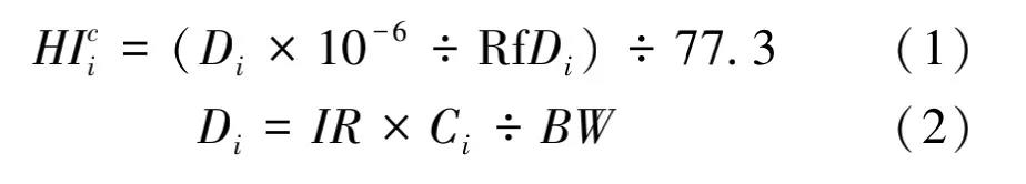 按照軀體毒物質(化學非致癌物)由飲水途徑所致的健康風險計算模型,如式(1)~式(2)。