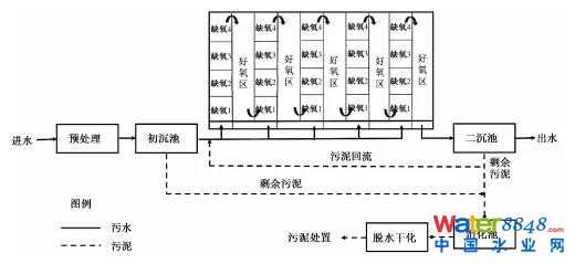 圖 3 西安第四污水廠工藝流程圖