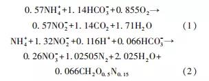 (1)有氧條件下,約一半的氨氮轉(zhuǎn)化為NO2--N的部分硝化(partialnitritation,PN)反應(yīng)階段,反應(yīng)方程式如式(1);