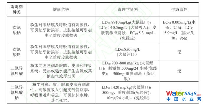 表1 主要含氯消毒劑的健康危害,毒性數(shù)據(jù)