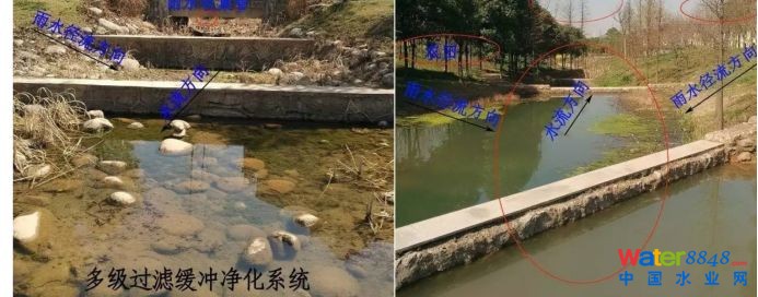 在消毒劑廢水產(chǎn)生后,通過(guò)地表徑流調(diào)蓄、攔截和凈化,對(duì)含消毒劑廢水進(jìn)行一次處理。通過(guò)多級(jí)過(guò)濾緩沖凈化系統(tǒng),對(duì)收集的地表徑流雨水進(jìn)行層層過(guò)濾凈化,避免對(duì)城市水質(zhì)的影響;在上游與消毒劑廢水交匯處設(shè)置多級(jí)過(guò)濾緩沖凈化系統(tǒng),對(duì)消毒劑面源污染引起的水質(zhì)問(wèn)題進(jìn)行處理,確保上游入水水質(zhì),降低消毒活動(dòng)對(duì)水質(zhì)的影響。
