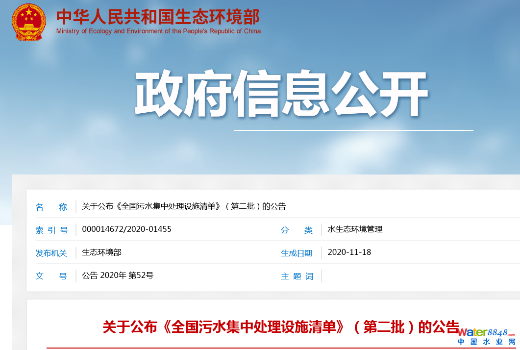 關于公布《全國污水集中處理設施清單》(第二批)的公告