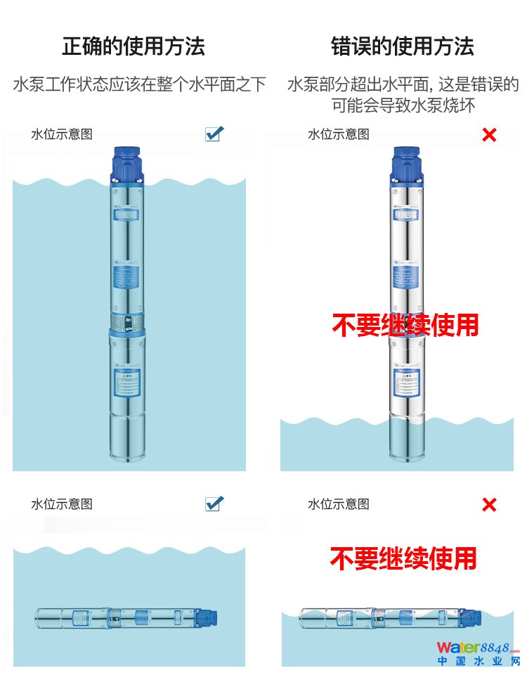 五、水泵的一、二級葉輪應(yīng)浸入水位1m以下。運轉(zhuǎn)中應(yīng)經(jīng)常觀察井中水位的變化情況。