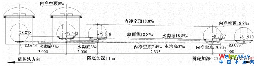 2.2 盾構(gòu)段與礦山段中心溝順坡排水