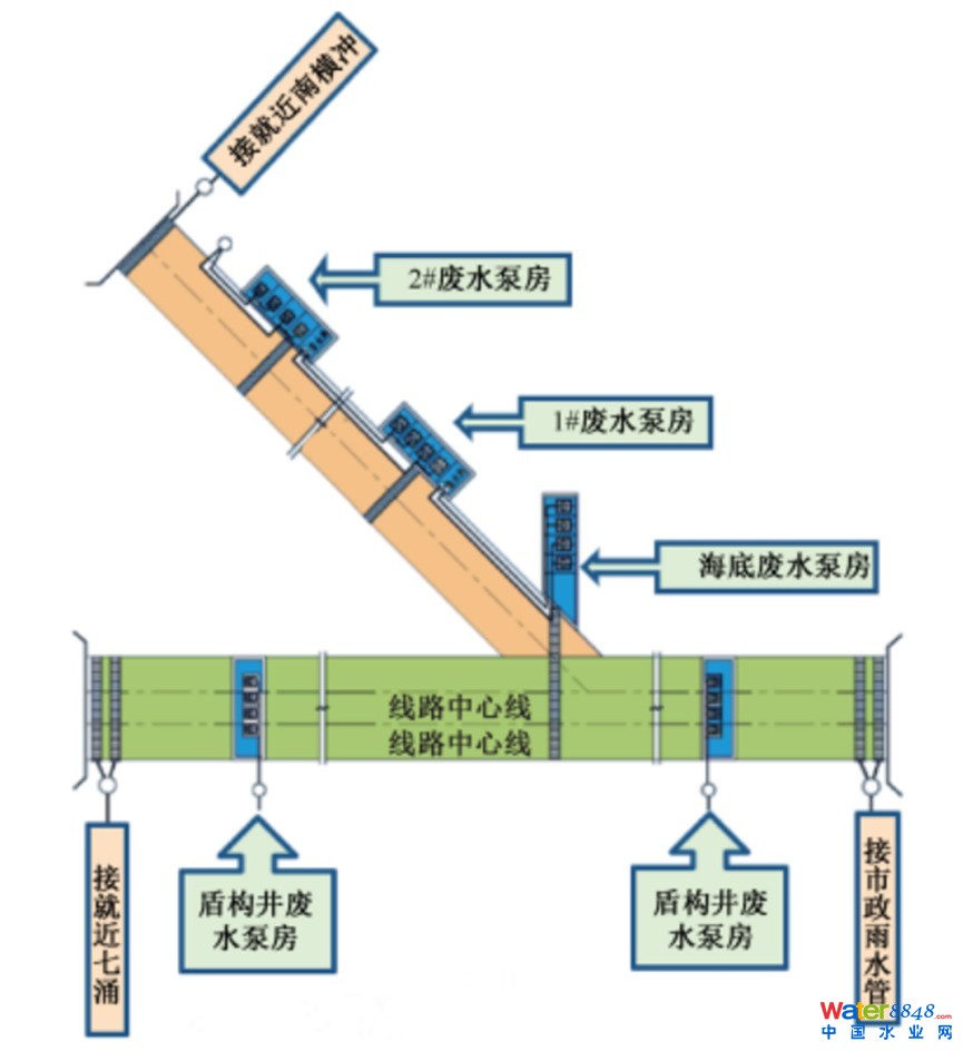 圖4 珠江口隧道盾構(gòu)段排水布置