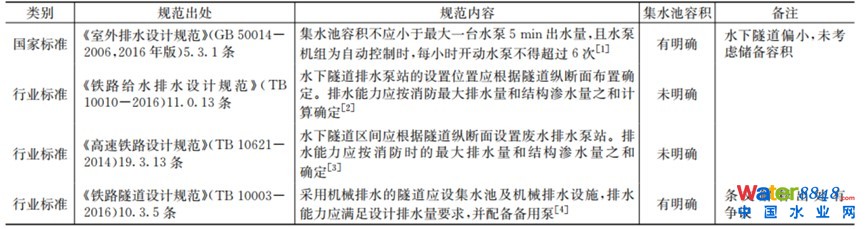 鐵路行業(yè)標(biāo)準(zhǔn)《鐵路給水排水設(shè)計(jì)規(guī)范》(TB 10010-2016)、《高速鐵路設(shè)計(jì)規(guī)范》(TB 10621-2014)均未對(duì)泵站集水池容積有明確。