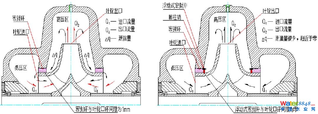 (1)緩解蝸殼內(nèi)的回流現(xiàn)象,減少容積損失;(2)可提升水泵運行效率3%~5%