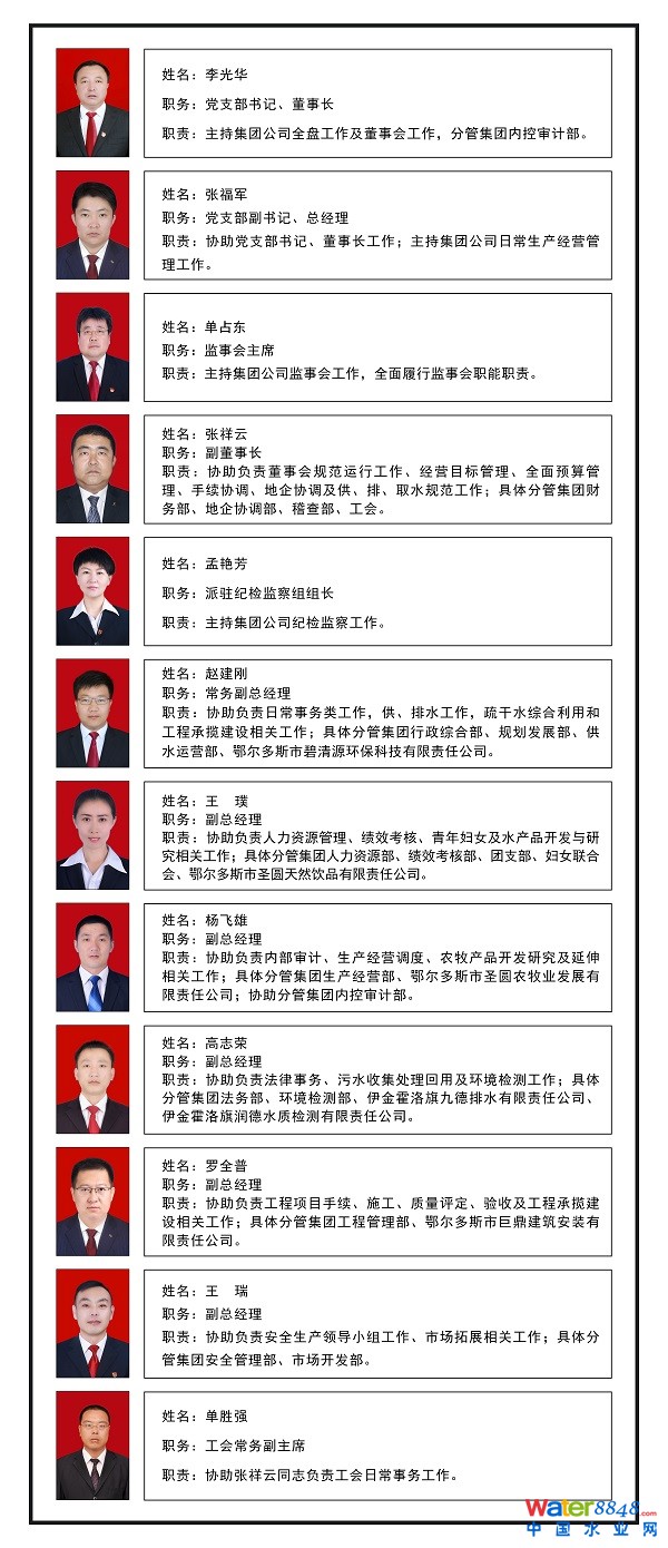 鄂爾多斯市圣圓水務集團有限責任公司:黨支部書記、董事長李光華