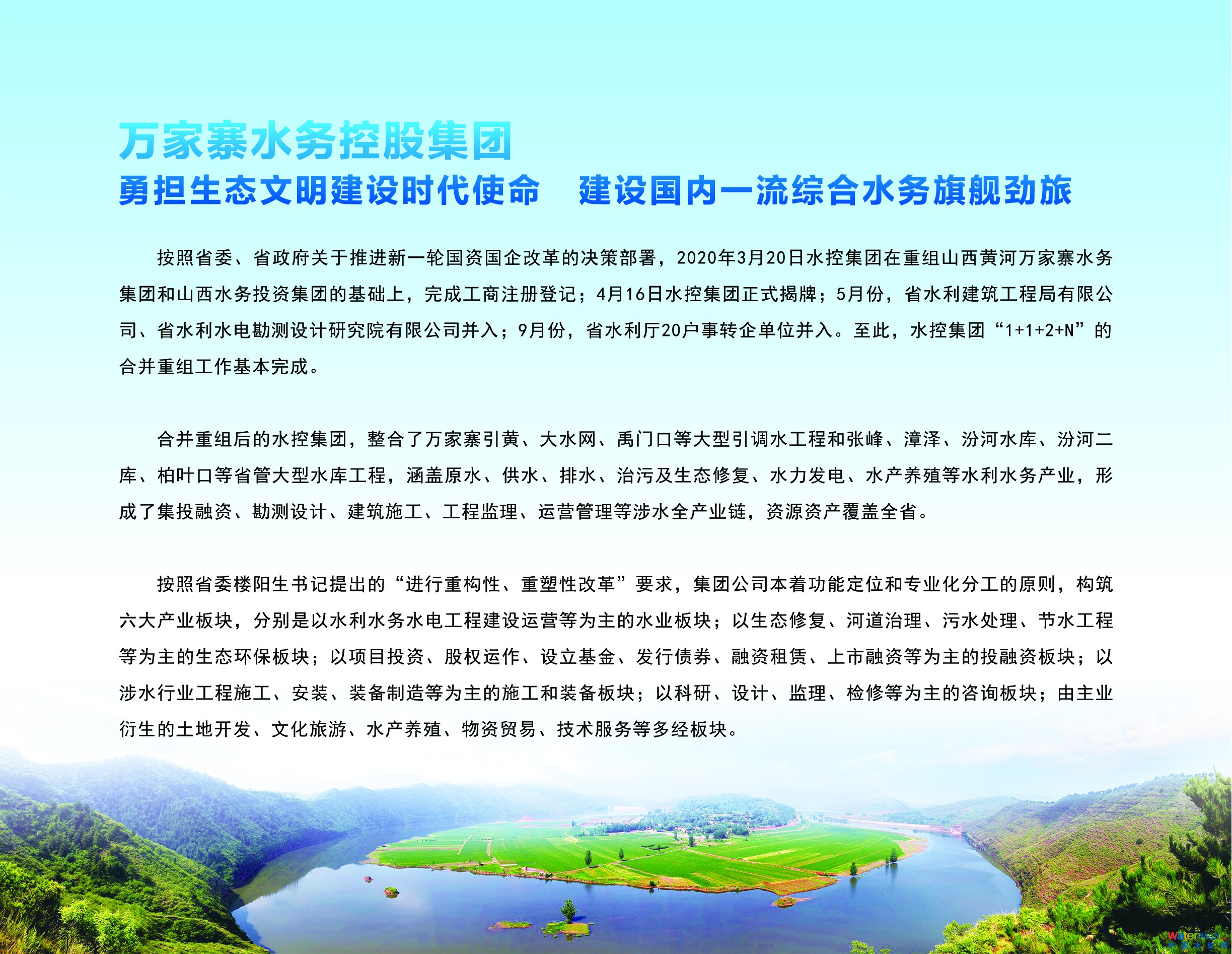萬(wàn)家寨水務(wù)控股集團(tuán)有限公司是按照省委、省政府改革部署組建的省屬國(guó)有水務(wù)企業(yè);竞w了引水、原水、供水、排水、治污及水力發(fā)電、水產(chǎn)養(yǎng)殖、生態(tài)修復(fù)等水利水務(wù)產(chǎn)業(yè),形成了集投融資、勘察設(shè)計(jì)、施工、監(jiān)理、運(yùn)