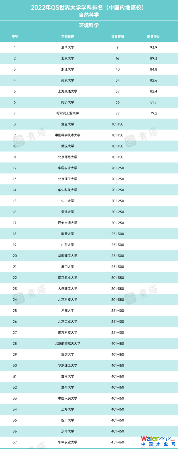 2022年QS世界大學(xué)學(xué)科排名,中國內(nèi)地高校環(huán)境科學(xué)學(xué)科排名如下: