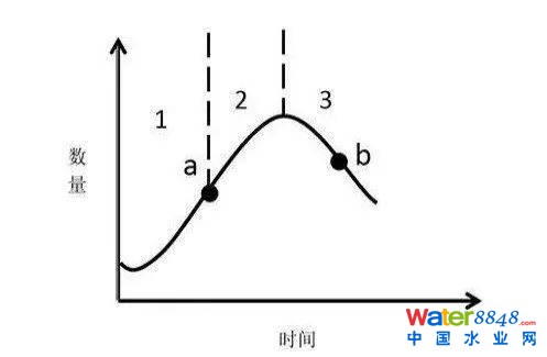 活性污泥的增長過程可分為適應階段、對數(shù)增長階段、減速增長階段和內(nèi)源代謝階段等四個階段。