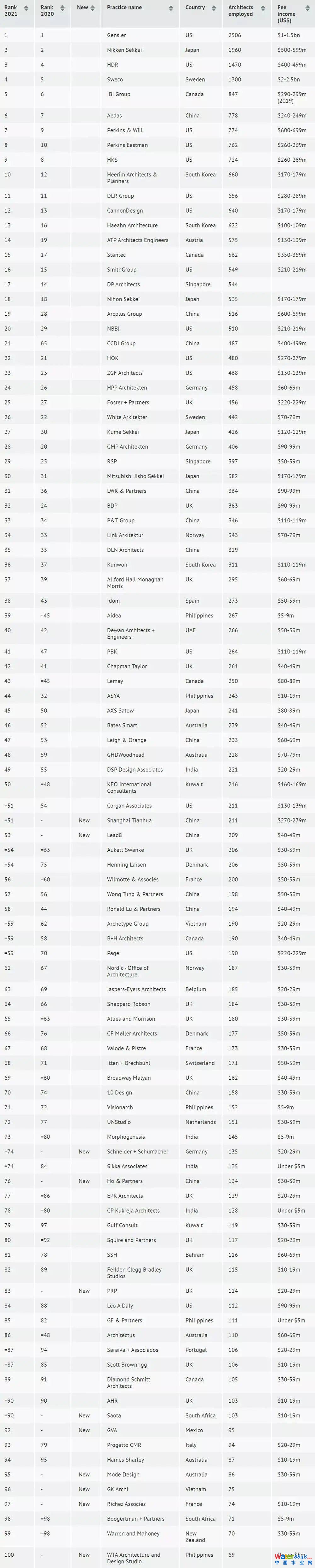 2021全球100強(qiáng)建筑設(shè)計(jì)公司名單公布,中國上榜13家
