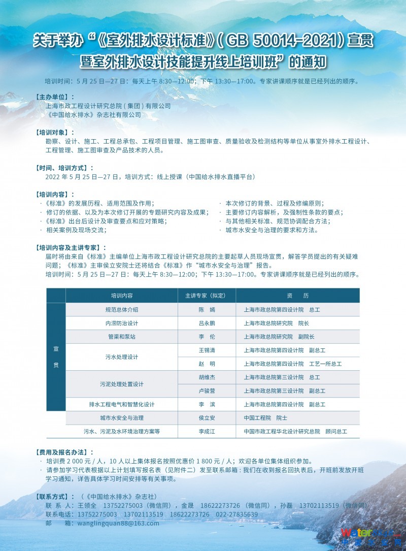 2022年5月25日-27日,培訓方式:線上授課(中國給水排水直播平臺)