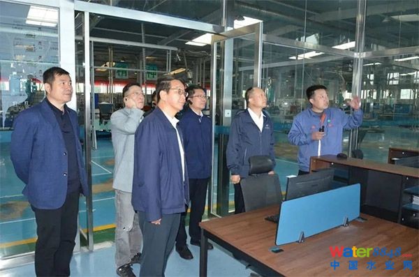 中建六局黨委常委、紀(jì)委書記裴宏森,中建六局水利水電集團(tuán)公司黨委書記、董事長(zhǎng)魏新顏一行參觀大禹節(jié)水集團(tuán)