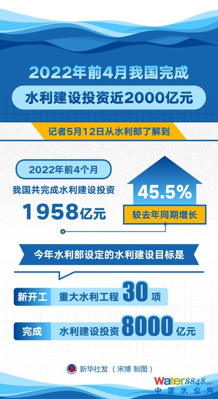 圖表:2022年前4月我國(guó)完成水利建設(shè)投資近2000億元