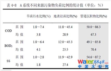 4. 雨天溢流污染太嚴(yán)重。排水管道養(yǎng)護(hù)管理工作最最重要的兩個(gè)字是“清、通”。雨水管是“清”,“清”就是把雨水管道中的積泥“清”出來,讓雨水管做到旱天無積泥、少積泥!污水管是“通”,把積泥“通”到下游去,進(jìn)到污水處理廠,讓污水管無淤積、無堵塞、水暢流!合流管既要“清”、也要“通”,旱天多多“通”,保證低水位時(shí),像污水管一樣,無淤積、無堵塞、水暢流;降雨前還應(yīng)該好好再進(jìn)行“清”。雨水管和合流管都有排河道水體的口門,“清”的目的就是雨天少點(diǎn)污染物入河。只有最大限度地減少管道中的積泥,才能夠減少雨天溢流污染。可是污水管、合流管和雨水管往往一年四季都是高水位,甚至是滿管流,這就讓“清、通”養(yǎng)護(hù)變得十分困難,就不可能做到有效地將雨水、合流管中的積泥“清出來”!好比煮了一鍋稀飯,想把米粒都撈干凈,是件很難的事道理是一樣的。圖6是奧地利排水管道中的積泥情況,其大部分管道積泥不超過管徑的1/40。這比我們養(yǎng)護(hù)后要求積泥厚度不大于1/8可好得多啊!管道積泥少了,合流管、雨水管雨天排水口溢流和出流的污染物就少了。圖7是某平原河網(wǎng)地區(qū)城市雨天排水口出流污染的構(gòu)成,在總污染負(fù)荷中,管道積泥的污染負(fù)荷要占到60%以上,可見合流管道、雨水管道清淤工作的重要性之高。圖8是某山地城市雨天合流制排水口污染物變化情況,COD最高可以高達(dá)2000mg/L之巨。