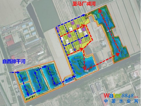 通過實施津南區(qū)再生水利用及水生態(tài)綜合修復(fù)工程,打造人工濕地、設(shè)置河道生物柵、恢復(fù)水生植物群落、布設(shè)太陽能復(fù)氧設(shè)備和推流曝氣設(shè)備、布置小型水質(zhì)在線監(jiān)測設(shè)備、建設(shè)規(guī)范化污水排污口、設(shè)置初期雨水凈化裝置等,保障津沽污水處理廠出水中主要污染物指標(biāo)達到Ⅲ類標(biāo)準(zhǔn)、衛(wèi)南洼生態(tài)片區(qū)農(nóng)業(yè)面源污染出水水質(zhì)中主要污染物指標(biāo)達到Ⅳ類標(biāo)準(zhǔn)、九道溝附近的農(nóng)業(yè)面源污染出水水質(zhì)中主要污染物指標(biāo)達到V類標(biāo)準(zhǔn)、去除馬廠減河及其9條支渠水體中的污染物、凈化水質(zhì)并恢復(fù)重建河道水體的生態(tài)系統(tǒng)。