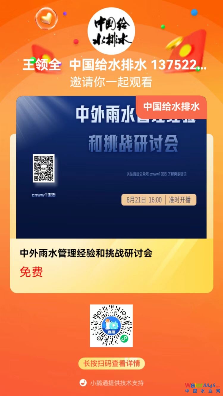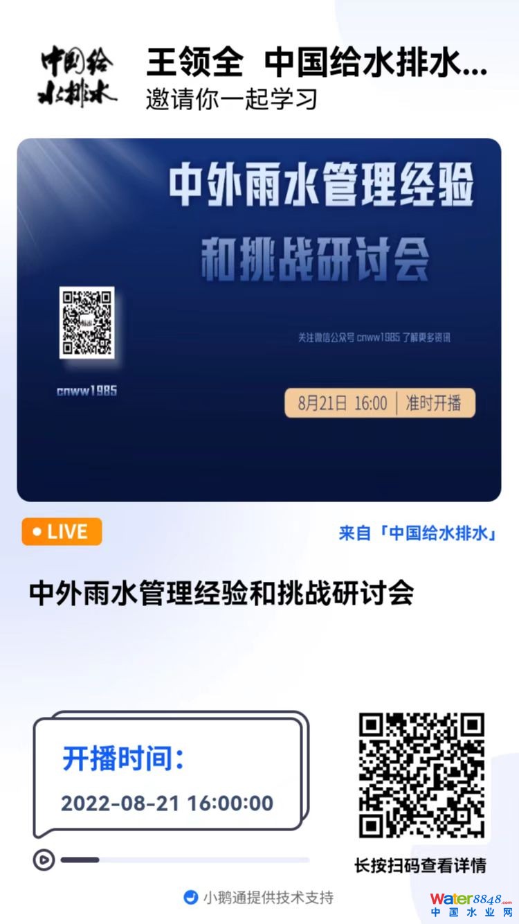 直播預(yù)告 | 8月21日 中外雨水管理經(jīng)驗和挑戰(zhàn)研討會