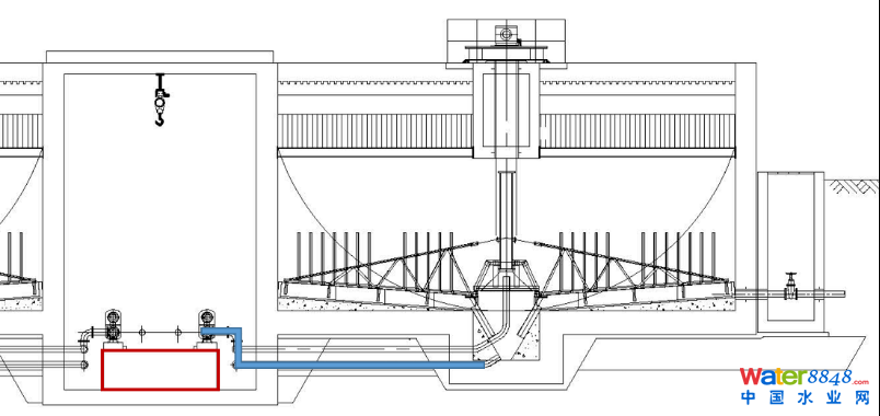 因此,需要將吸水管路直接水平接入到污泥泵中;或者采用較緩的角度直接接入到污泥泵中。