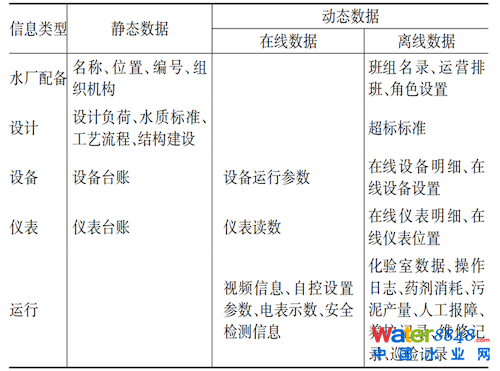 表2 數(shù)字水廠中數(shù)據(jù)來(lái)源及分類