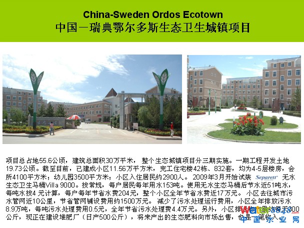 中國-瑞典鄂爾多斯生態(tài)衛(wèi)生城鎮(zhèn)項目