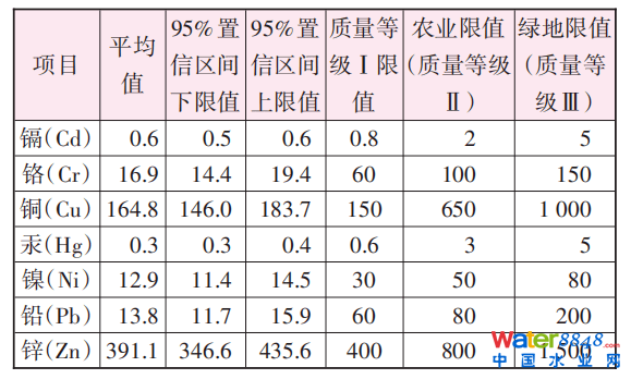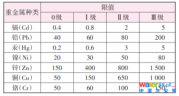 根據(jù)法律中規(guī)定的污泥不同用途,限定污泥重金屬含量四個級別,具體見表1。
