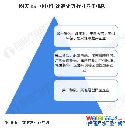 滲濾液處理行業(yè)目前約有 200 多家企業(yè),大部分為輕資產(chǎn)民營企業(yè),兼具技術(shù)與資金實(shí)力的龍頭企業(yè)稀缺。從競(jìng)爭(zhēng)格局來看,總體上目前我國滲濾液處理行業(yè)可以分為三個(gè)競(jìng)爭(zhēng)梯隊(duì):