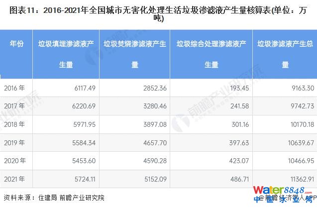滲濾液根據(jù)其產(chǎn)生的場(chǎng)所可以分為填埋場(chǎng)滲濾液、垃圾焚燒廠滲濾液、垃圾綜合處理廠滲濾液和垃圾中轉(zhuǎn)站滲濾液等。由于我國垃圾處理方式目前以填埋和焚燒為主,因此垃圾滲濾液處理需求主要在垃圾填埋場(chǎng)和垃圾焚燒廠。