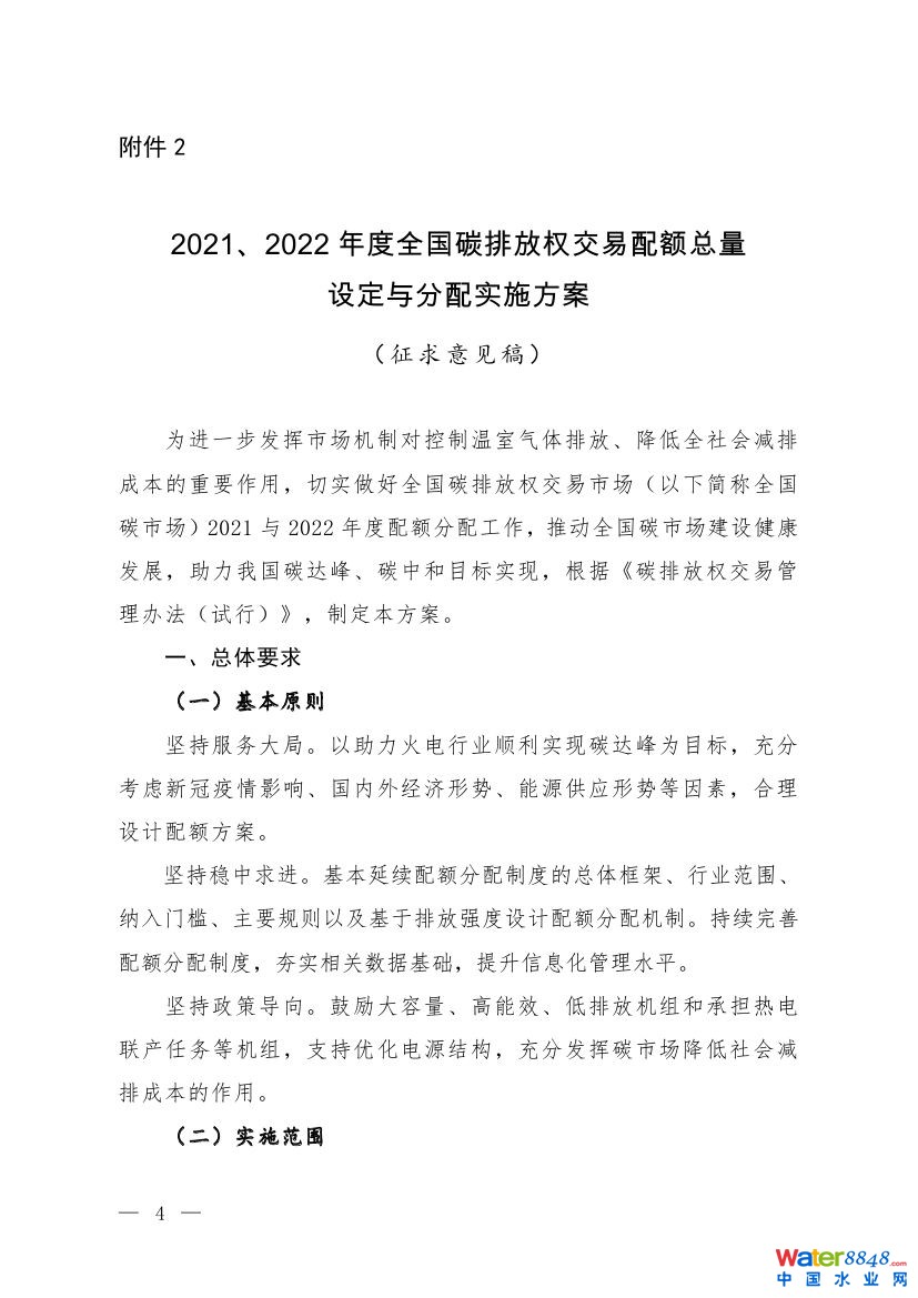 2.2021、2022年度全國(guó)碳排放權(quán)交易配額總量設(shè)定與分配實(shí)施方案(征求意見稿)
