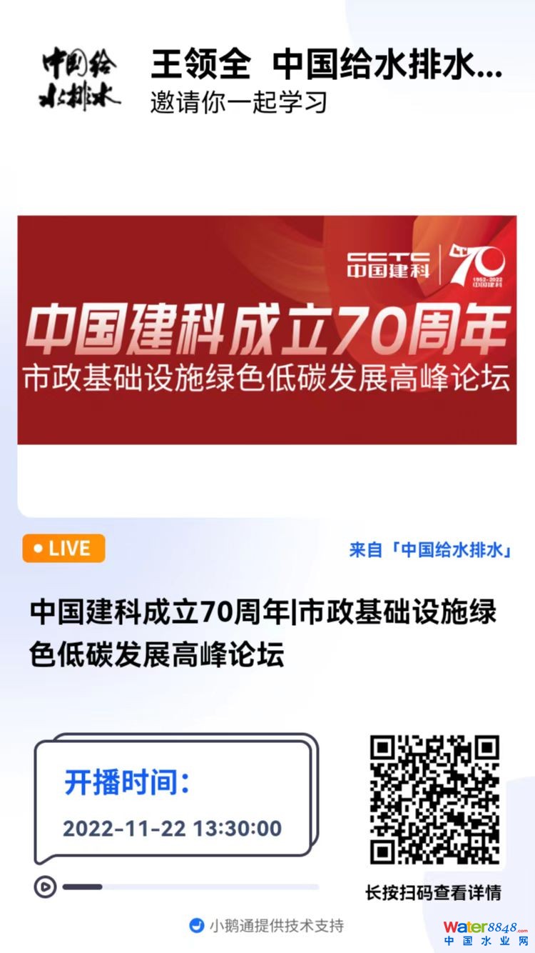 核心提示:中國建科成立70周年|市政基礎(chǔ)設(shè)施綠色低碳發(fā)展高峰論壇 直播時間:2022年11月22日 13:30—18:25 2022-11-22 13:30:00 開始