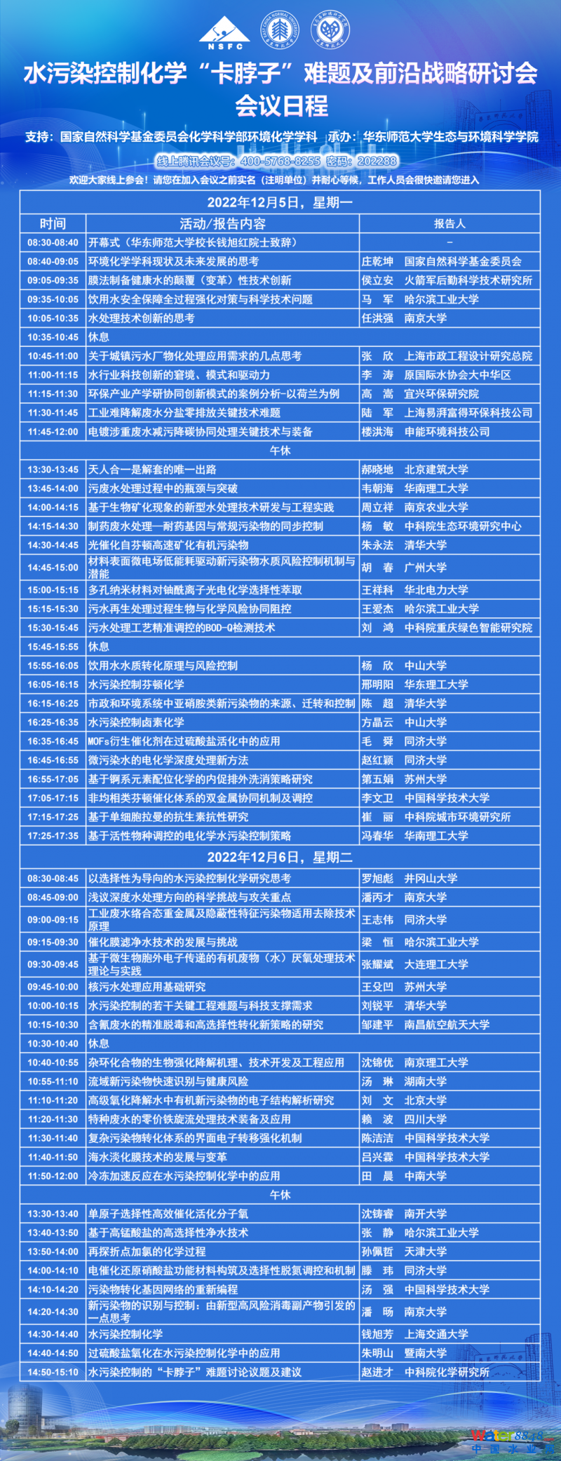 會(huì)議日程│水污染控制化學(xué)“卡脖子”難題及前沿戰(zhàn)略研討會(huì) 由國(guó)家自然科學(xué)基金委員會(huì)化學(xué)科學(xué)部“科技專項(xiàng)”支持