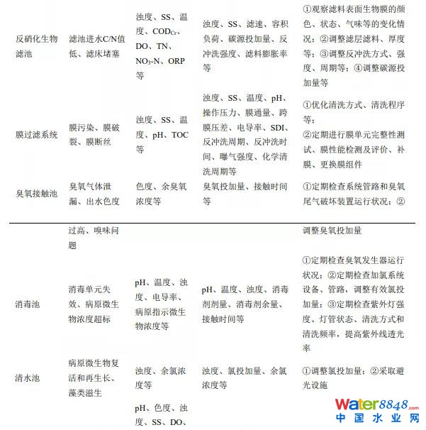 具體而言,針對某一處理單元,再生水廠應(yīng)根據(jù)其后續(xù)處理單元的進(jìn)水水質(zhì)要求,確定其管理目標(biāo),以保證后續(xù)處理單元的穩(wěn)定高效運行。例如,若采用反滲透處理單元生產(chǎn)A級再生水,由于反滲透膜孔徑小,極易堵塞且難以清洗,需要高水平的預(yù)處理。預(yù)處理單元一般包括:混凝沉淀、介質(zhì)過濾、超(微)濾等,預(yù)處理單元的水質(zhì)管理目標(biāo)應(yīng)符合其后續(xù)反滲透單元的進(jìn)水水質(zhì)要求。