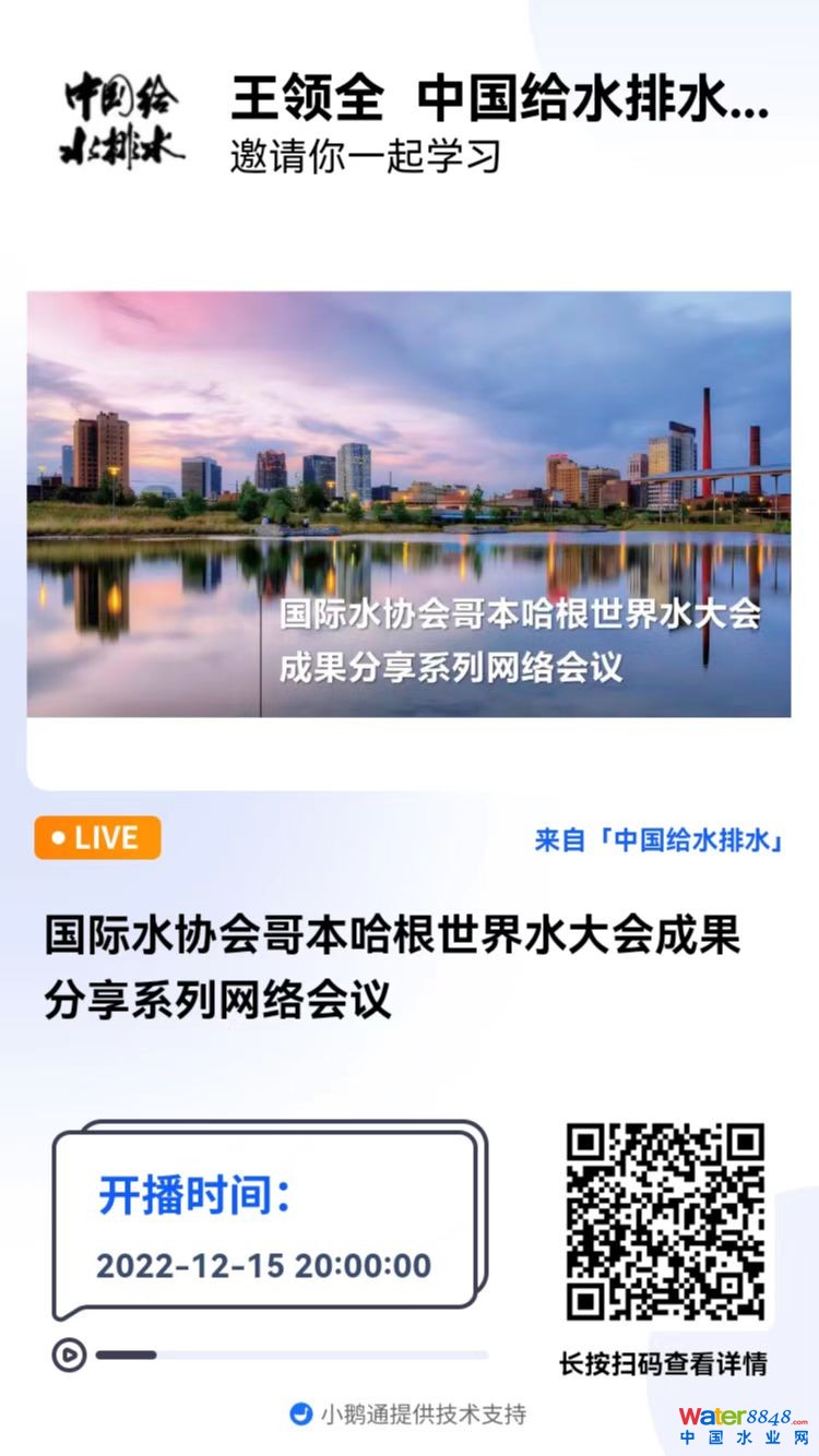 國際水協(xié)會哥本哈根世界水大會成果分享系列網絡會議 直播時間:2022年12月15日 20:00—22:00
