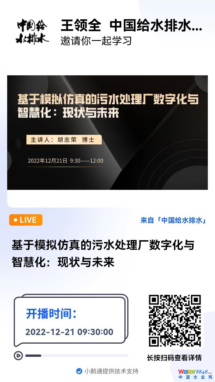 基于模擬仿真的污水處理廠數(shù)字化與智慧化:現(xiàn)狀與未來 直播時(shí)間:2022年12月28日(周三)9:30—12:00