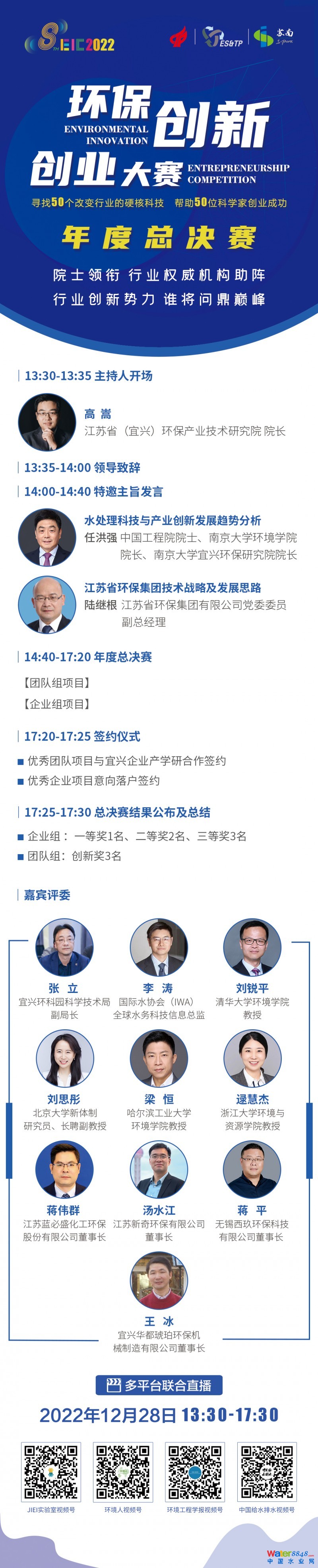 八年征程,精彩依舊!12月28日,2022(第八屆)環(huán)保創(chuàng)新創(chuàng)業(yè)大賽年度總決賽即將開賽。