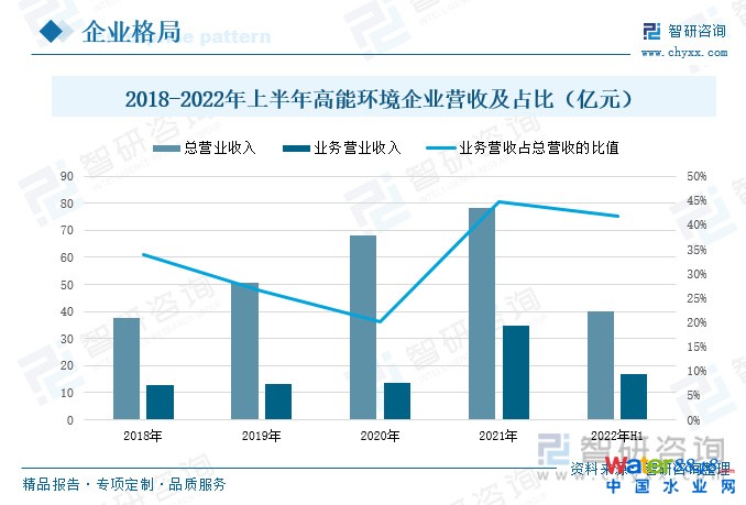 高能環(huán)境主業(yè)涵蓋環(huán)境修復(fù)與固廢處置兩大領(lǐng)域,形成了固廢危廢處理、生活垃圾處理、環(huán)境修復(fù)三大核心業(yè)務(wù)板塊,兼顧水處理、煙氣處理、污泥處置等其他領(lǐng)域協(xié)同發(fā)展。近年來,公司順應(yīng)減污降碳的時(shí)代趨勢,深化固廢危廢資源化利用為重點(diǎn)戰(zhàn)略方向的業(yè)務(wù)布局。2018年以來,高能環(huán)境固廢危廢資源化利用業(yè)務(wù)的營業(yè)收入總體上保持增長的態(tài)勢,2021年增長提速,營業(yè)收入共計(jì)34.94億元,較2020年增長了156%,占2021年總營業(yè)收入的44.65%。2022年上半年高能環(huán)境的營業(yè)收入為39.97億元,較2021年同期增長了18.55%;固廢危廢資源化利用業(yè)務(wù)的營業(yè)收入為16.7億元,同比增長了51.8%。