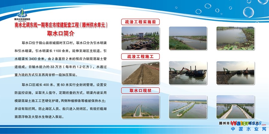 水發(fā)公司目前主要經(jīng)營(yíng)南水北調(diào)水,主要供應(yīng)兗礦魯南化工有限公司、聯(lián)泓新材料科技股份有限公司等企業(yè)的生產(chǎn)用水,F(xiàn)管理南水北調(diào)微山湖取水口,甘橋、東滿莊、邢莊、刁莊4座加壓泵站,134公里輸配水管道和調(diào)蓄水庫(kù)等供水設(shè)施;管理中水泵站共2座,分別為第一污水處理廠中水加壓泵站、第二污水處理廠中水加壓泵站,主要作用是把污水廠處理完的中水用于環(huán)衛(wèi)園林用水,城郭河、調(diào)蓄水庫(kù)生態(tài)補(bǔ)水;管理濱湖境內(nèi)13公里湖東堤及崗頭閘、辛安河閘、中心河閘、西蓋村閘四座河閘。