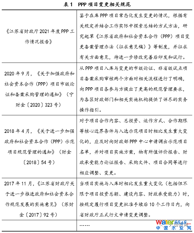 《江蘇省財政廳2021年度PPP工作情況報告》內(nèi)容顯示,正研究起草《江蘇省政府和社會資本合作(PPP)項目變更備案管理辦法(征求意見稿)》等制度,并征求有關(guān)方面意見,待進一步修改完善后印發(fā)和試行。雖然公開途徑未見征求意見稿,但這表明未來對PPP項目變更的管理將會愈發(fā)規(guī)范。