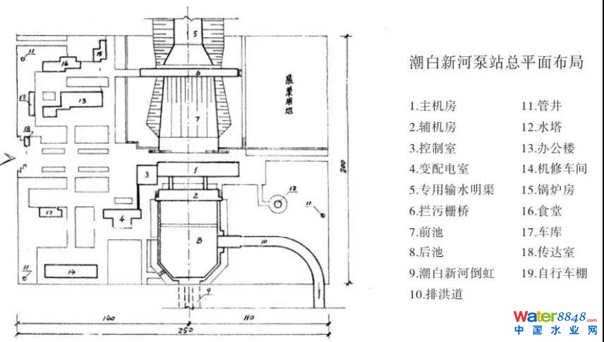 圖1 潮白新河泵站總平面圖布置(單位:米)
