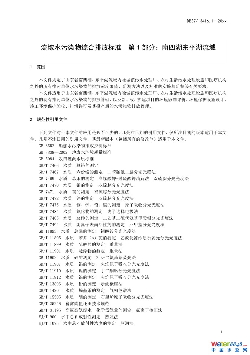 附件:1.《流域水污染物綜合排放標(biāo)準(zhǔn)第1部分:南四湖東平湖流域(征求意見(jiàn)稿)》(修訂DB37/ 3416.1)文本