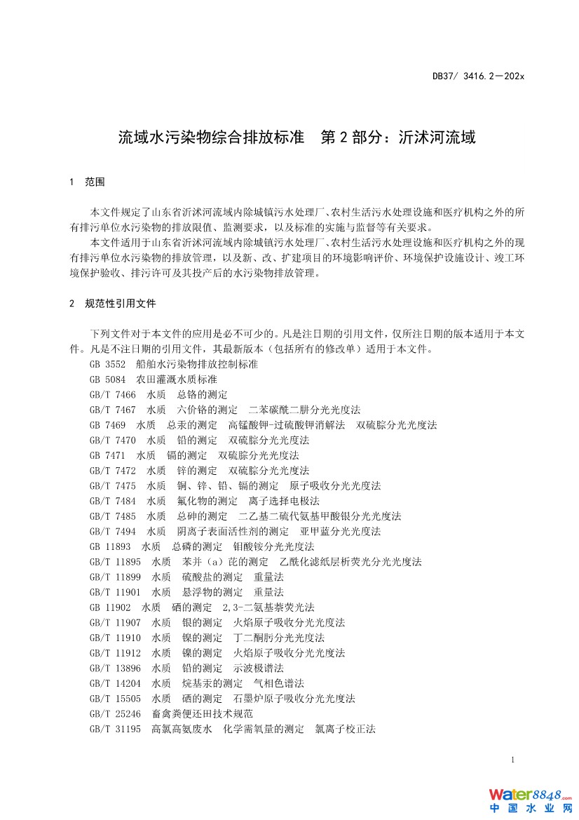 2.《流域水污染物綜合排放標(biāo)準(zhǔn)第2部分:沂沭河流域(征求意見(jiàn)稿)》(修訂DB37/ 3416.2)文本