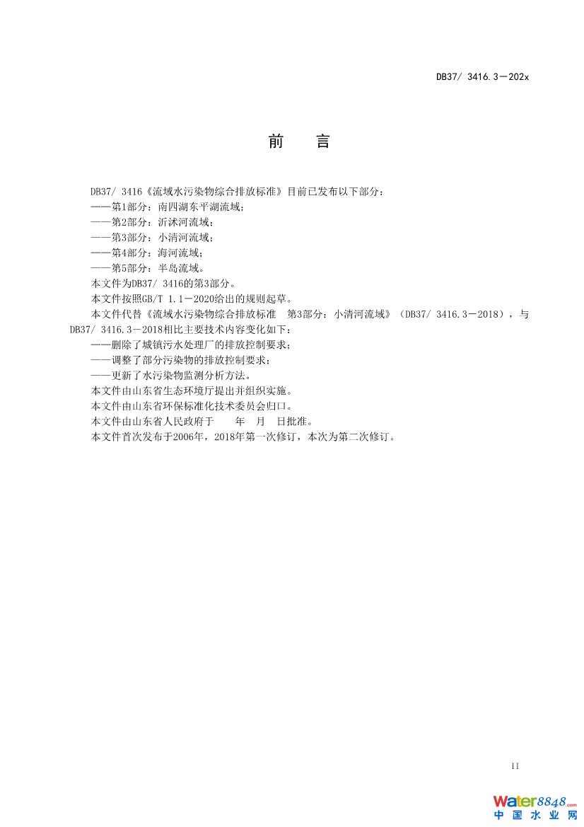 3.《流域水污染物綜合排放標(biāo)準(zhǔn)第3部分:小清河流域(征求意見(jiàn)稿)》(修訂DB37/ 3416.3)文本