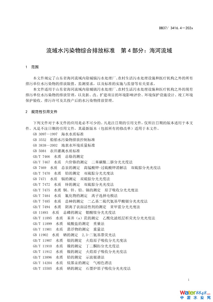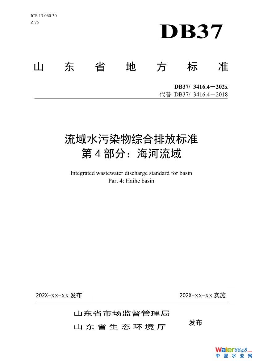 4.《流域水污染物綜合排放標(biāo)準(zhǔn)第4部分:海河流域(征求意見(jiàn)稿)》(修訂DB37/ 3416.4)文本