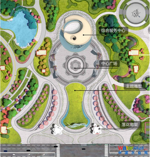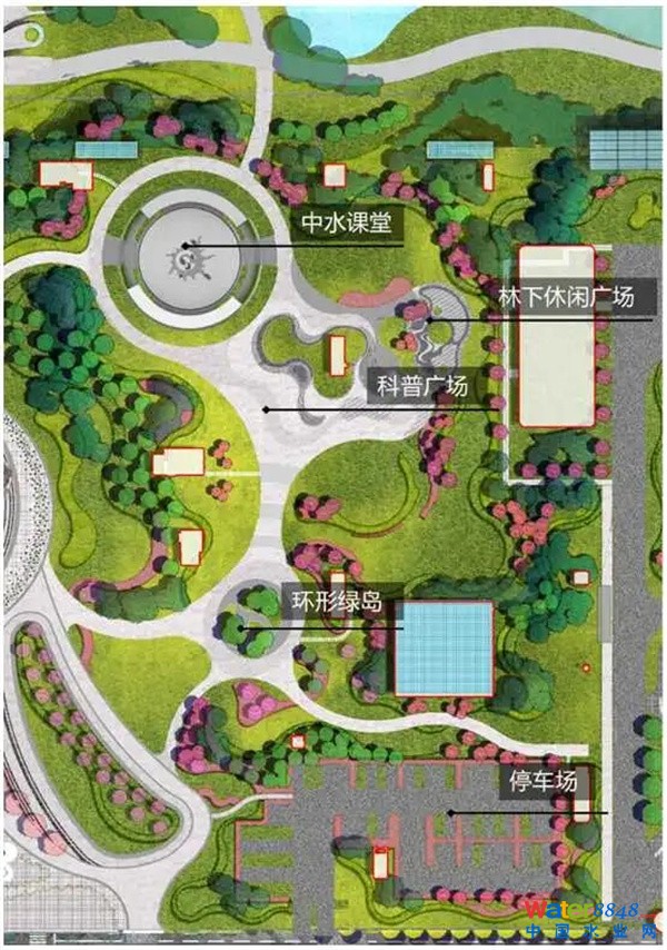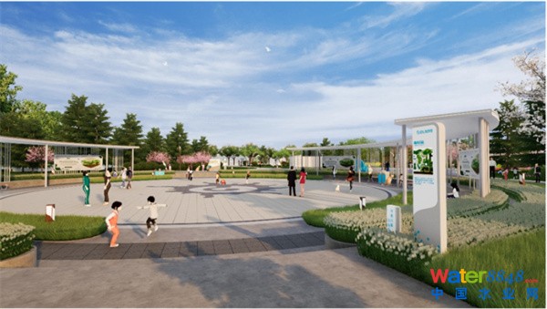 本工程將環(huán)境治理與城市公園建設(shè)融于一體,在解決周邊污水量爆發(fā)性增長問題的同時,打造多元、親民、生態(tài)的綜合公園,完善15分鐘社區(qū)生活圈。本次景觀方案以“綠愈水漾,悅動生活”為設(shè)計理念,以“回歸‘芯’活力,城市‘森’呼吸”為設(shè)計目標(biāo),形成 “一軸、三區(qū)、多節(jié)點(diǎn)”的景觀結(jié)構(gòu),打造環(huán)形跑步道,布局多處體育運(yùn)動場地,結(jié)合地下污水處理廠概念打造環(huán)?破請@,融入多處景觀節(jié)點(diǎn),將生態(tài)濕地、運(yùn)動休閑、文化體驗、科普教育等功能綜合納入公園內(nèi),成功治愈地塊,讓水溶入生活,打造一座功能多元、景觀多樣的綜合性公園,為居民提供一處悅動、樂活的生活之所。