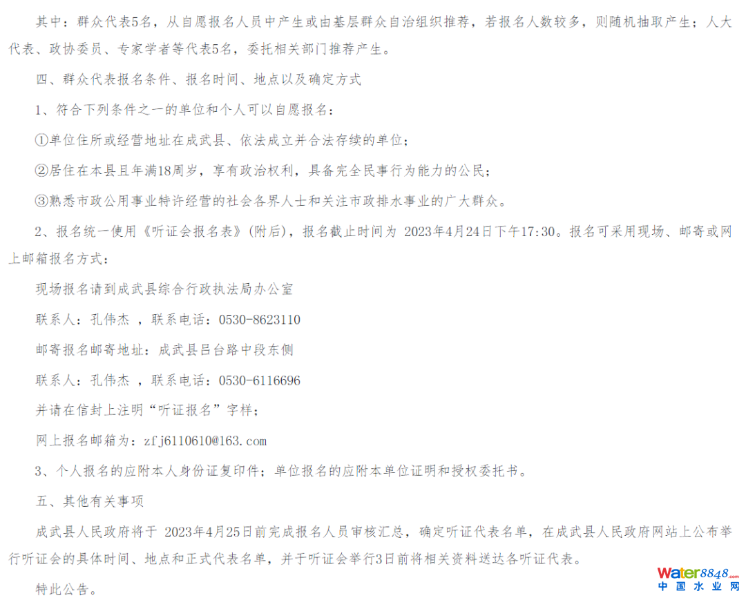 附:《關于舉行擬取消成武縣污水處理廠特許經營權和實施臨時接管的公告》原文