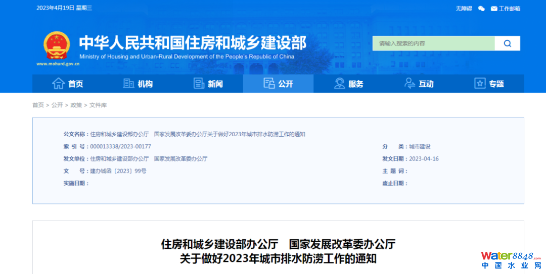 近日,住房和城鄉(xiāng)建設(shè)部、國(guó)家發(fā)展改革委發(fā)布關(guān)于做好2023年城市排水防澇工作的通知。