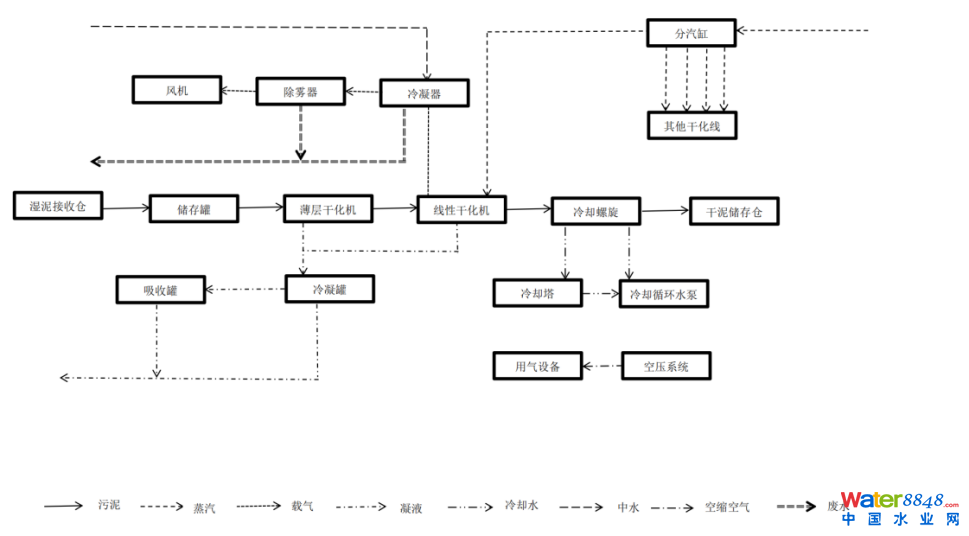 竹園污泥擴(kuò)建工程采用薄層+線(xiàn)性?xún)啥问礁苫夹g(shù),主要設(shè)備包括濕污泥輸送儲(chǔ)存設(shè)備,薄層干化機(jī),線(xiàn)性干化機(jī),干污泥輸送儲(chǔ)存設(shè)備等。