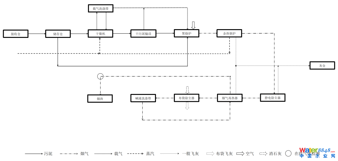 竹園污泥一期采用污泥槳葉干化+流化床焚燒+高溫?zé)煔庥酂崂?靜電、布袋除塵+濕法脫硫技術(shù)。主要設(shè)備包括槳葉式干化機(jī),鼓泡式流化床,余熱鍋爐,靜電除塵器,布袋除塵器,脫硫裝置,風(fēng)機(jī),干濕污泥輸送儲(chǔ)存設(shè)備等。