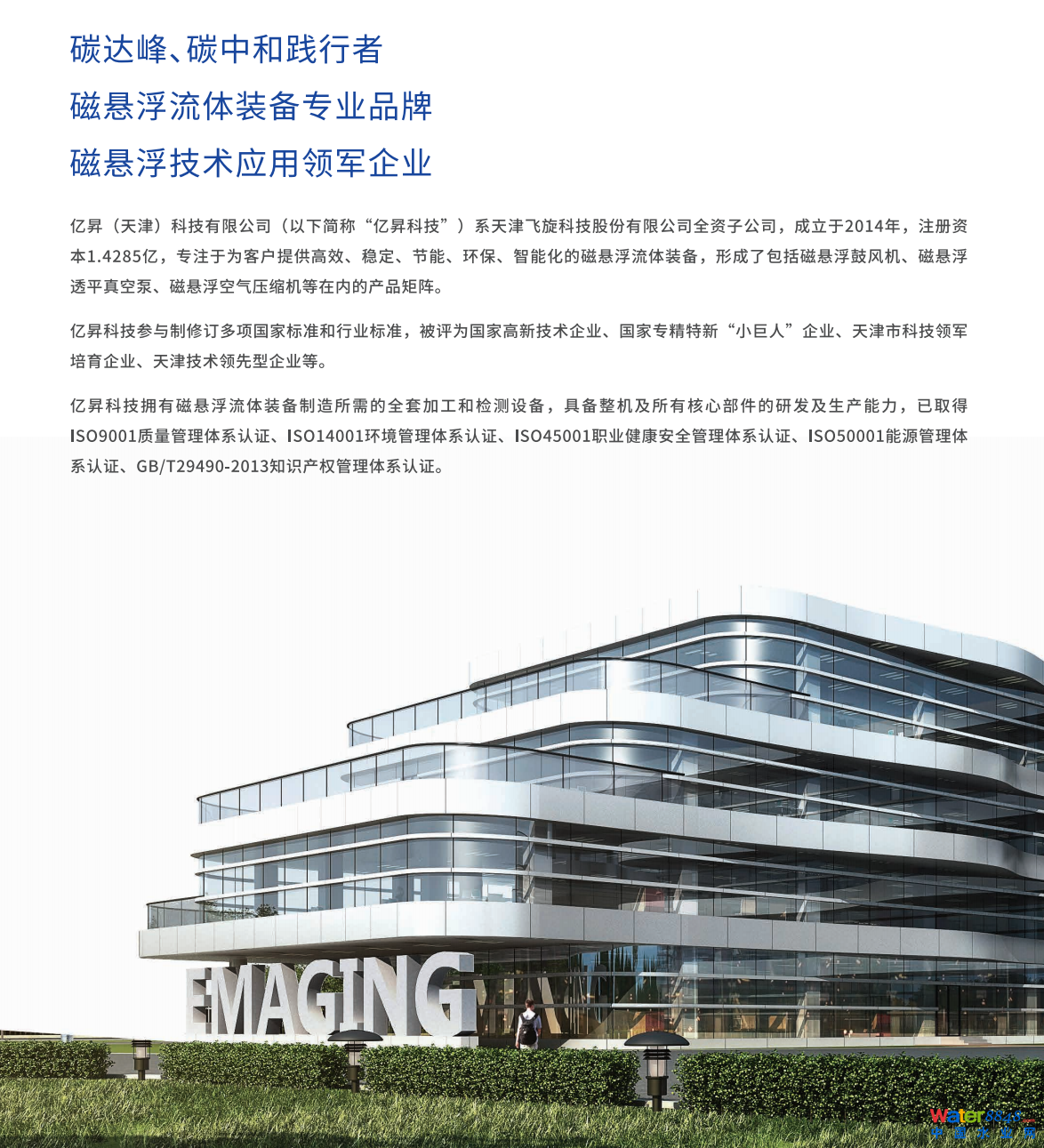 億昇(天津)科技有限公司,是我國(guó)第一家磁懸浮鼓風(fēng)機(jī)出口企業(yè)。 [6]